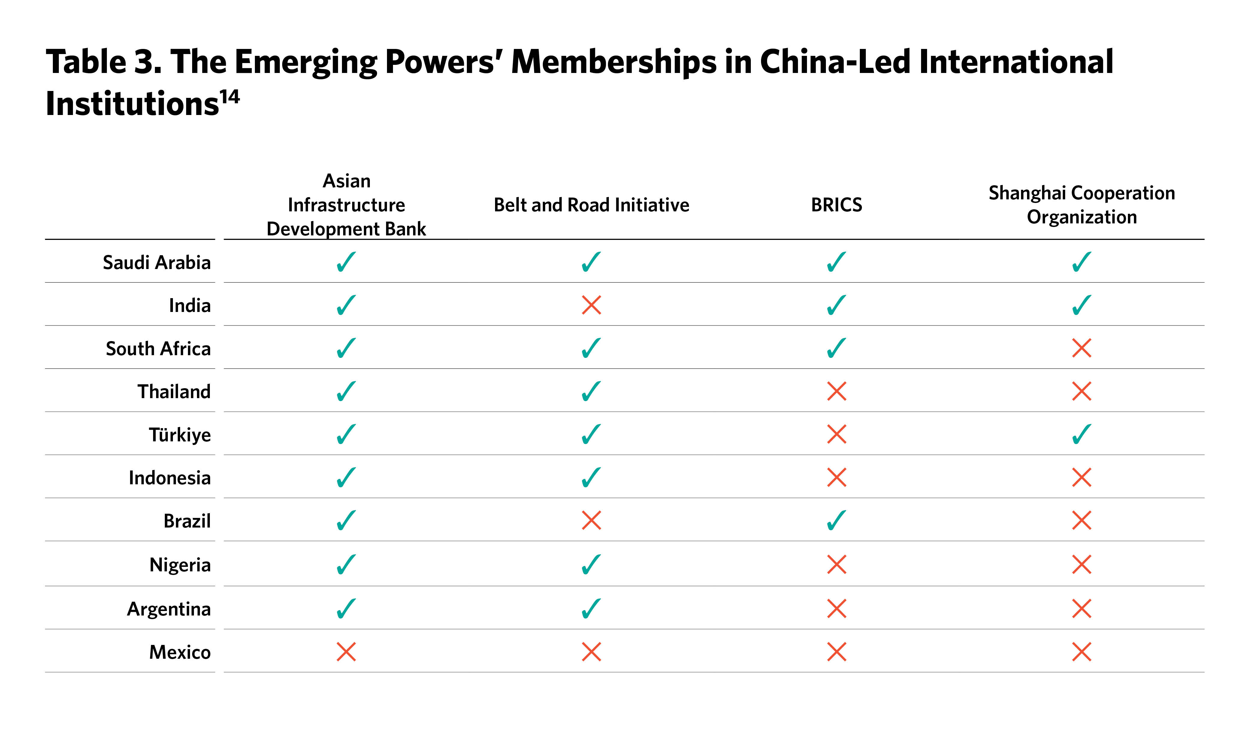 The next two chapters of this report outline the positions these ten emerging powers have taken on the war in Ukraine and on U.S.-China competition and evaluate the degree of their alignment with the United States. Overall, the emerging powers are loath to pick a side in strategic competition between great powers. Their approaches to the war in Ukraine and U.S.-China competition have, for the most part, involved striking a middle ground. Some have pursued courses of action that run counter to the strategic objectives of the United States; others have acted in closer alignment with it.